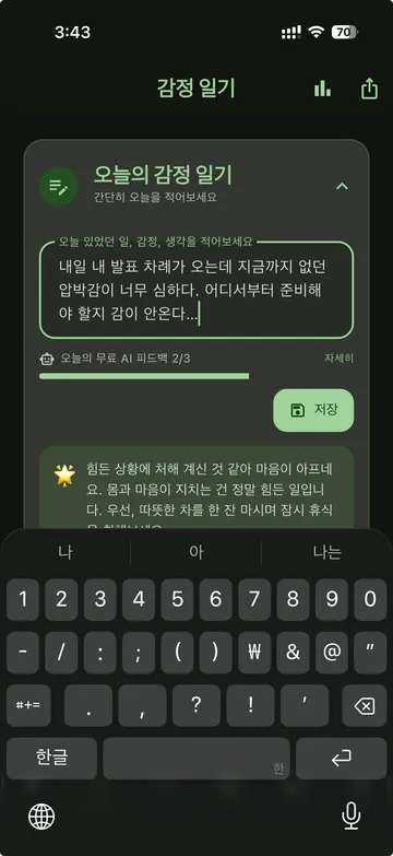감정을 적어보려 해도 오래 이어가기 어렵고, 내 상태를 객관적으로 보기 쉽지 않습니다.