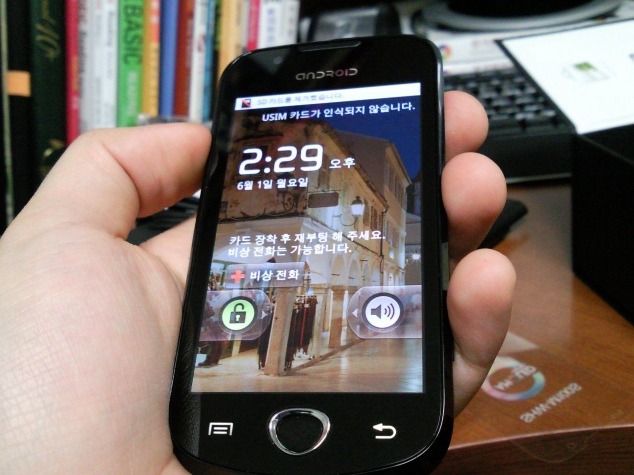 오오 화면 하나는... 끝내주네요. 삼성 로고 대신에 안드로이드 로고가 상단에 박혀있네요? ㅎㅎ