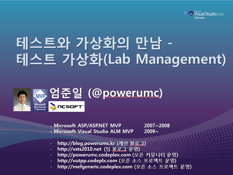 | UMC ¿Í ÇÔ²²ÇÏ´Â .NET Ç÷§Æû À̾߱â @powerumc :: [PPT] Å×½ºÆ®¿Í °¡»óÈÀÇ ¸¸³² - Å×½ºÆ® °¡»óÈ(Lab Management) |